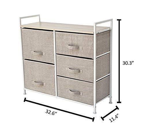 - ? BIG STORAGE CAPACITY - With 5 fabric drawers, there's plenty of storage for all your essentials. The size is also perfect for any place in your home, whether it be the bedroom or bathroom. The complete stand measures at 33.1" x 13.6" x 5.4"
