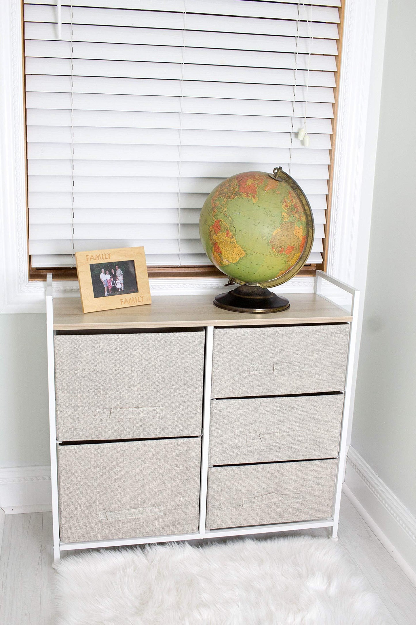 East Loft Storage Cube Dresser | Organizer for Closet, Nursery, Bathroom, Laundry or Bedroom | 5 Fabric Drawers, Solid Wood Top, Durable Steel Frame | Natural