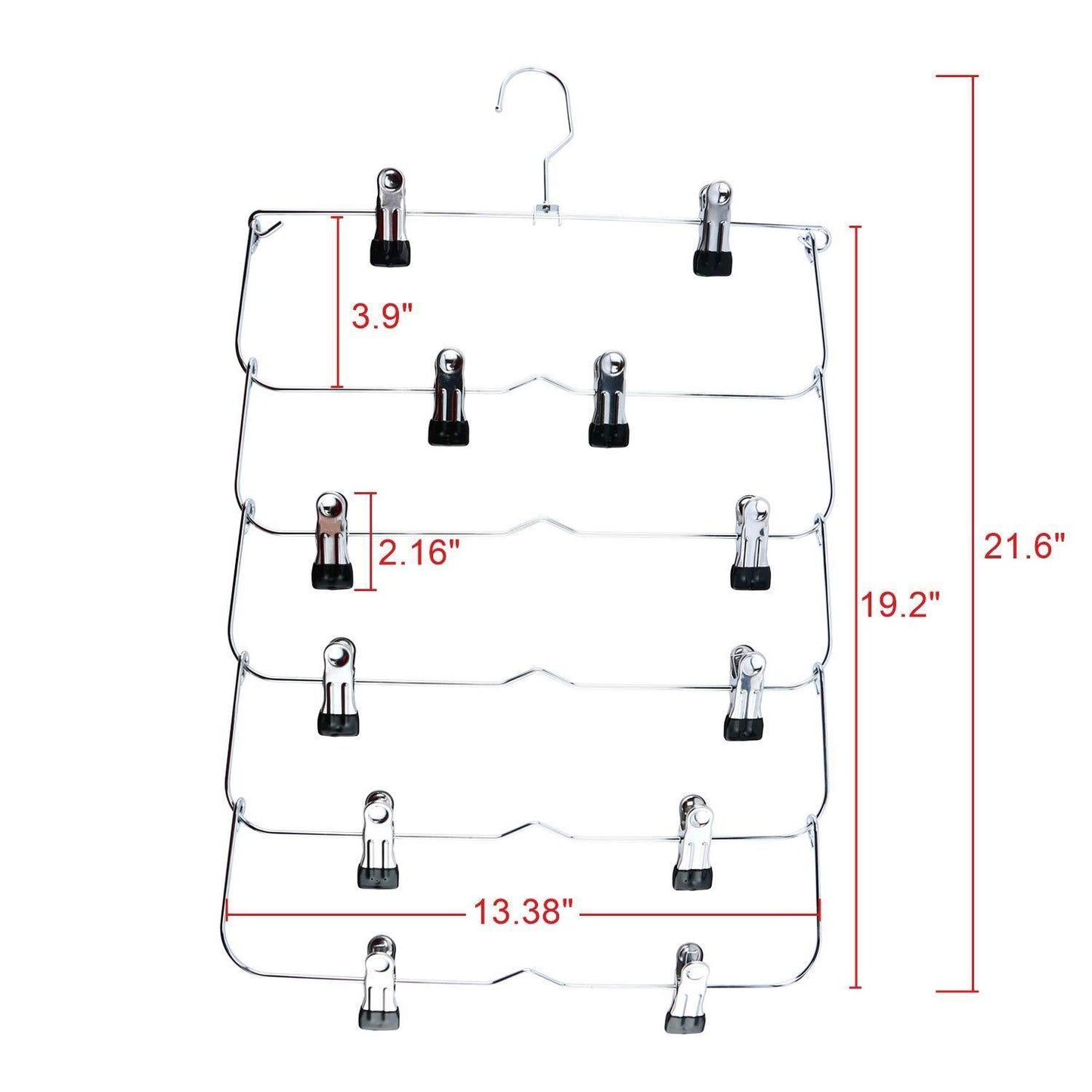 - ?Sturdy & Durable?:6-Tier skirt hangers are made of high quality stainless steel, Compared with the plastic hanger, It is not easy to bend and not to worry about the rusting of the trousers which its more durable