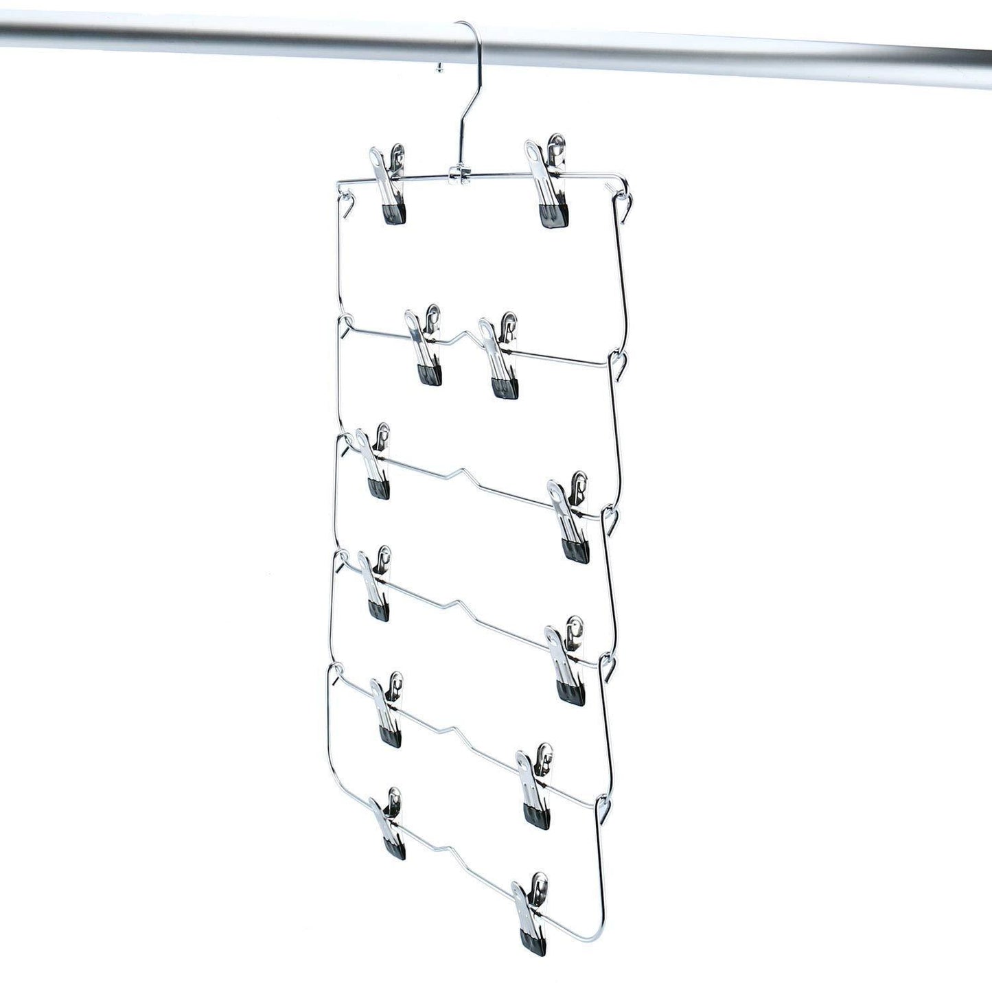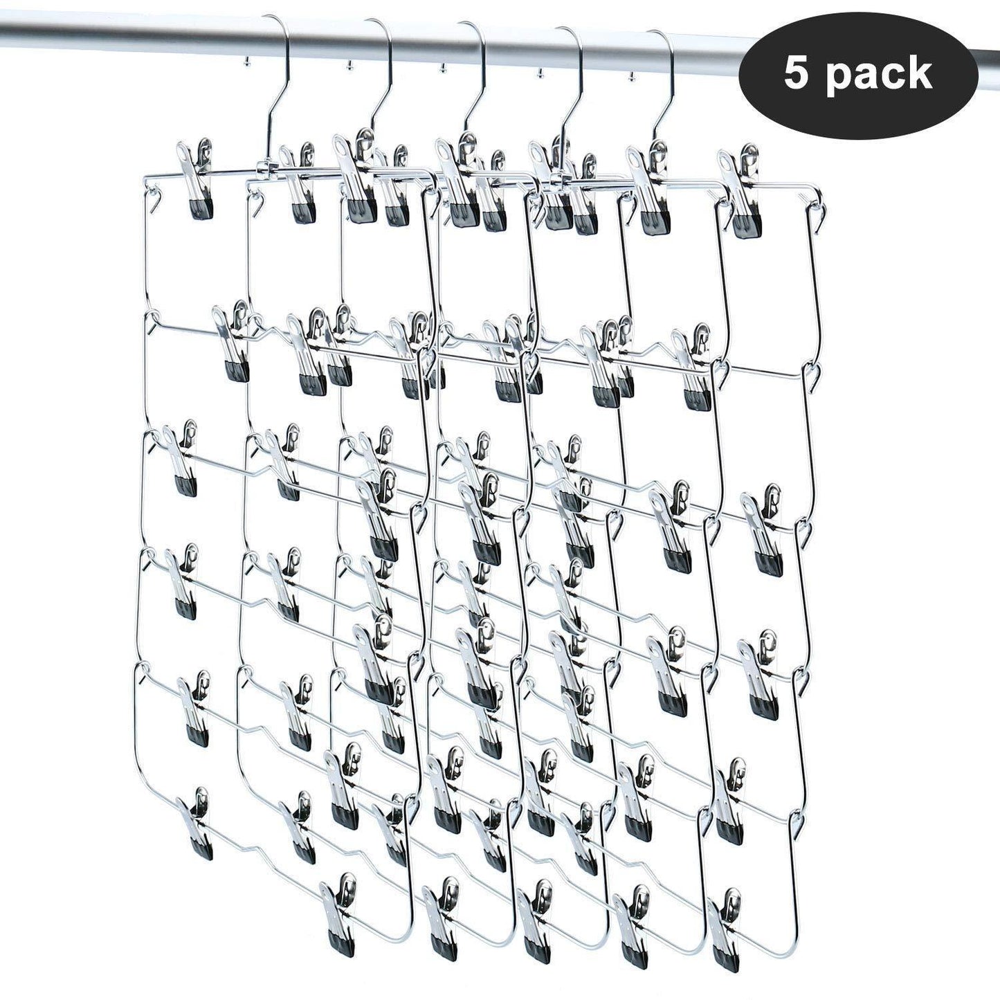 6 Tier Skirt Hangers Foldable Pants Hangers Closet Organizer Stainless Steel Fold up Space Saving Hangers (5 Pack)