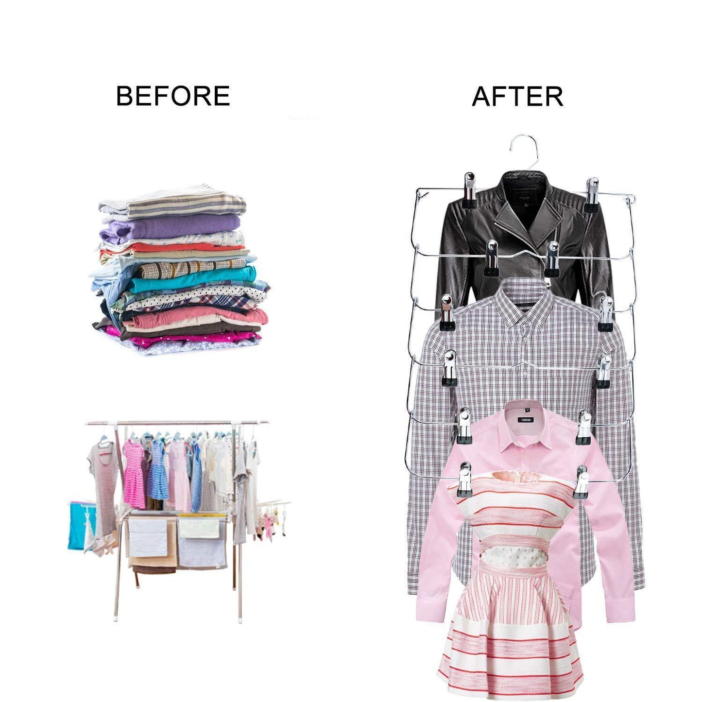 Each hanger can hold up 6 skirts, slacks or other clothing. Maximize to save your closet space and keep it clean and orderly.