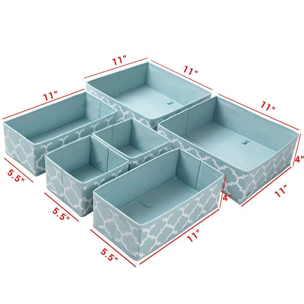 Size - 2PCS 11" X 11" X 4", 2PCS 5.5" X 5.5" X 4", 2PCS 11" X5.5" X 4", 6 pack closet organizer your underwears, bras, socks, neck ties and scarves easy to find and keep your living space well organized.