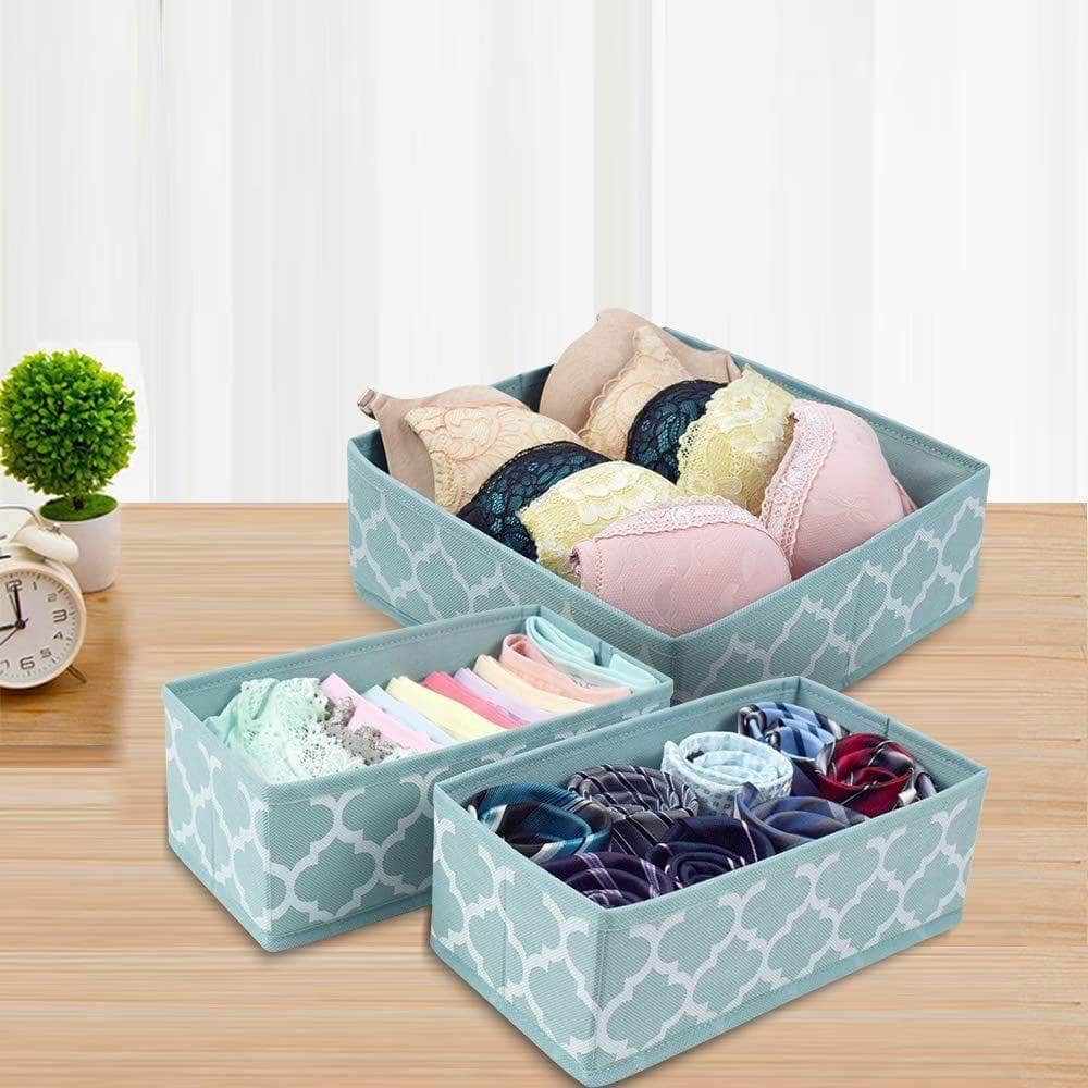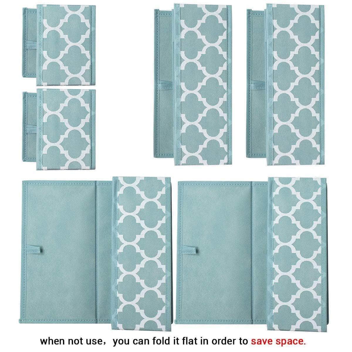 Set of 6 Foldable Dresser Drawer Dividers, Cloth Storage Boxes, Closet Organizers for Underwear, Bras, Socks, Ties, Scarves (Blue Lantern Printing)