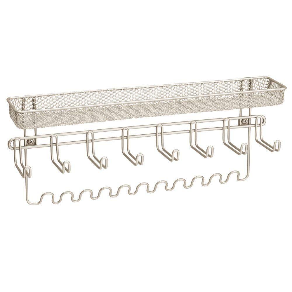- EASY TO USE: This stylish closet organizer easily mounts to closet, bedroom or bathroom walls with the included hardware; Perfect for men's, women's, and children's accessories; Ideal for tweens and tweens; Use on the wall next to dressing or vanity tables to store much needed accessories; The basket tray is also perfect for cosmetic storage such as makeup brushes, perfume, body sprays, essential oils, hand lotions, body butter, serums, palettes, lip pots, blush, eyeliner and much more