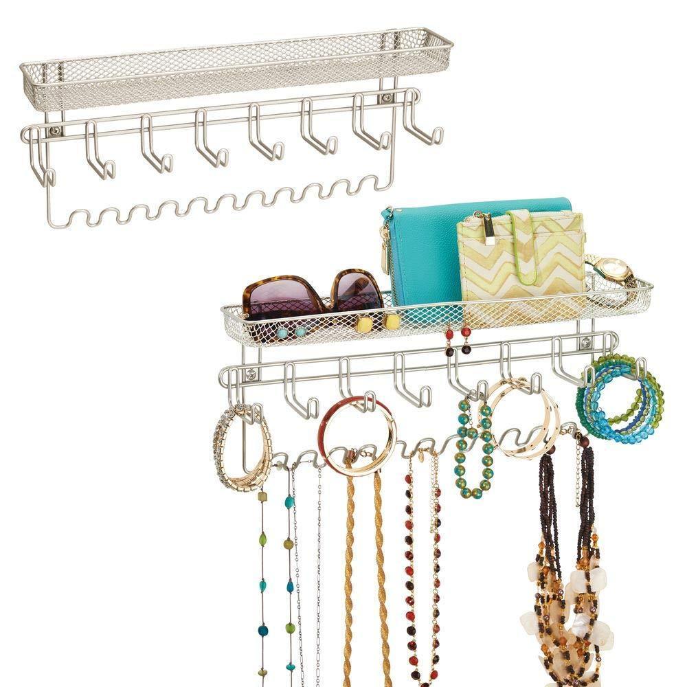 - ORGANIZING MADE EASY: It is easy to add convenient custom storage to any closet or room with this wall mount accessory organizer; All of your jewelry and accessories are neat, organized and in their place with this storage shelf unit; Maximize unused wall space and turn it into an additional storage opportunity; Set of 2