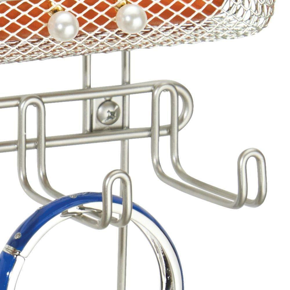 - FUNCTIONAL & VERSATILE: 8 large hooks and 11 small hooks all you to hang necklaces, bracelets, bangles, small purses and wristlets and scarves; The basket at the top provides additional storage for accessories such as wallets, sunglasses, reading glasses, cell phones, smart watches, watch bands and loose change; Great for bedroom, bathroom, hallway, entryway and mudrooms; Use in homes, apartments, condos, dorms, RVs and campers