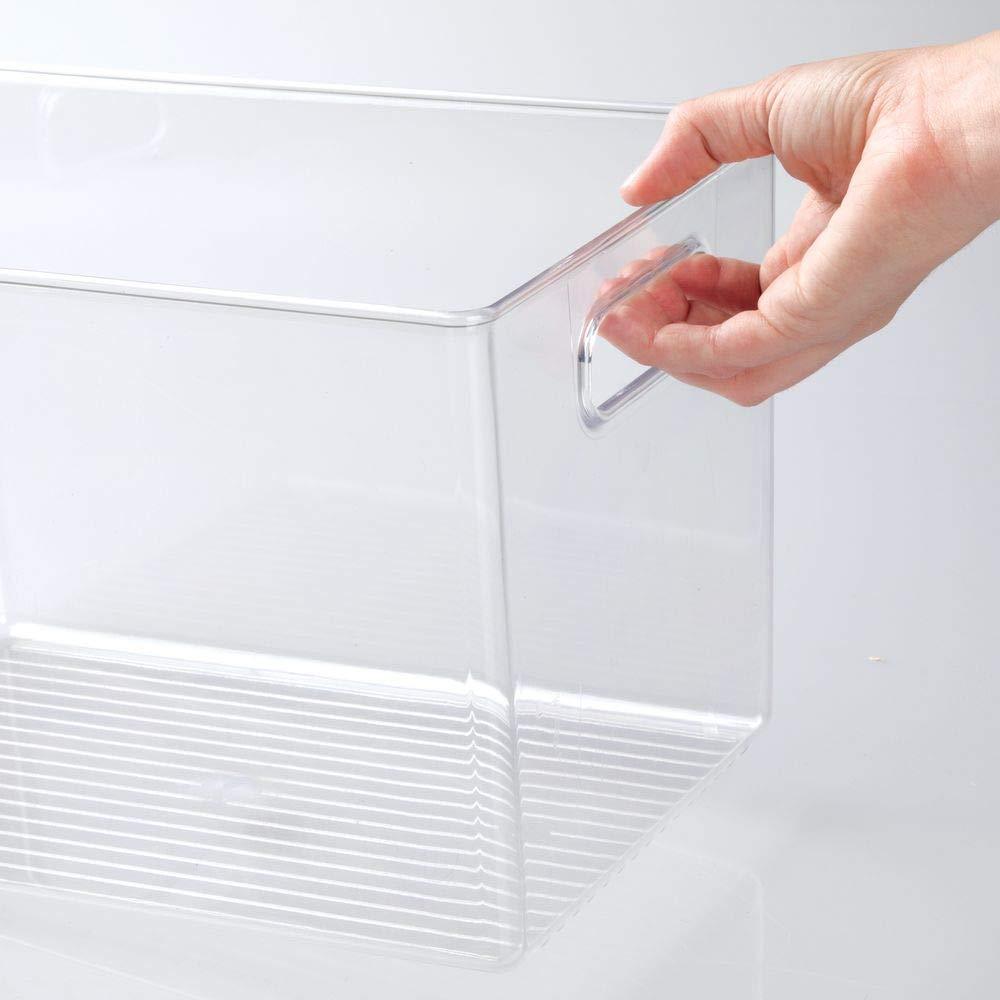 Deep Plastic Home Storage Organizer Bin for Cube Furniture Shelving in Office, Entryway, Closet, Cabinet, Bedroom, Laundry Room, Nursery, Kids Toy Room - 12" x 8" x 8" - 4 Pack - Clear