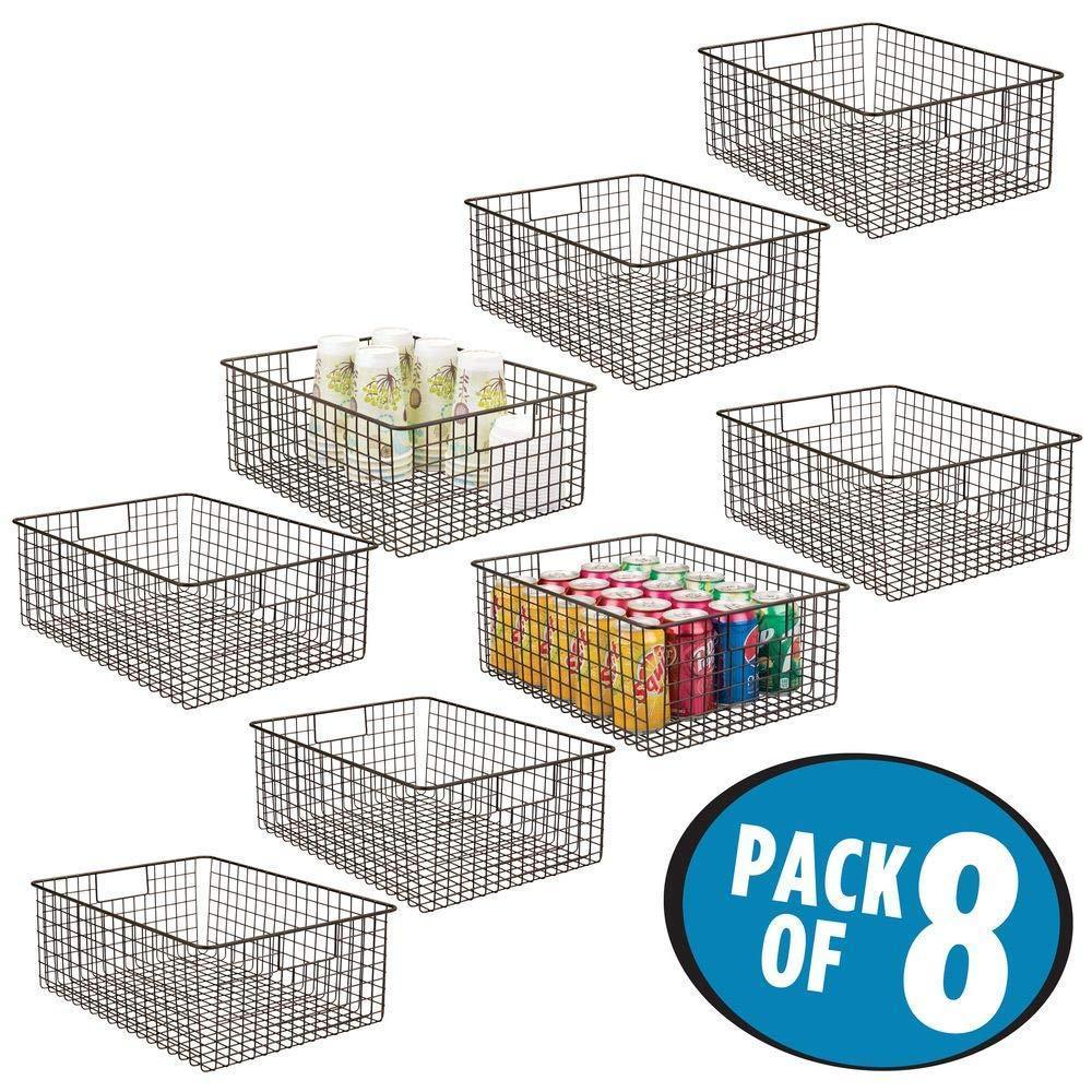 Farmhouse Decor Metal Wire Food Organizer Storage Bin Baskets with Handles for Kitchen Cabinets, Pantry, Bathroom, Laundry Room, Closets, Garage - 8 Pack - Bronze