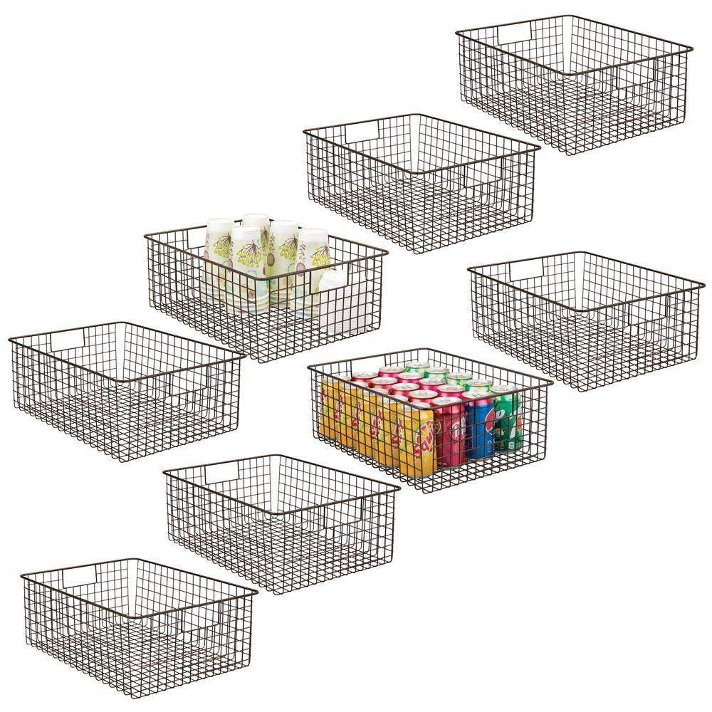 - FUNCTIONAL & VERSATILE: Organize all of your kitchen essentials; Great for dry goods and other kitchen items such as: towels, candles, small appliances and kitchen tools; These also work in the refrigerator or freezer; Classic open wire design offers roomy and easy storage for any room in your home; Use multiple bins side by side for larger spaces or use them individually; Try these in closets, bedrooms, bathrooms, laundry rooms, craft rooms, mudrooms, offices, playrooms, and garages