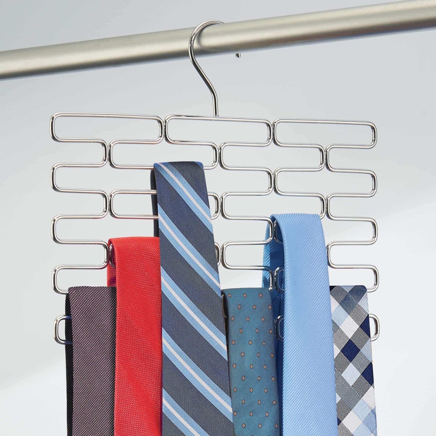 Details: Never hunt for your favorite ties again with this hanging storage organizer from ! It's the perfect closet accessory that helps you keep ties, head scarfs, shawls, scarves and other accessories neat and organized. Twenty-three open sections provide storage that is accessible from both sides of the organizer. The sleek and durable finish on this closet storage solution keeps clothing safe and snag free. Instantly install by hanging over a closet rod for space-saving storage.