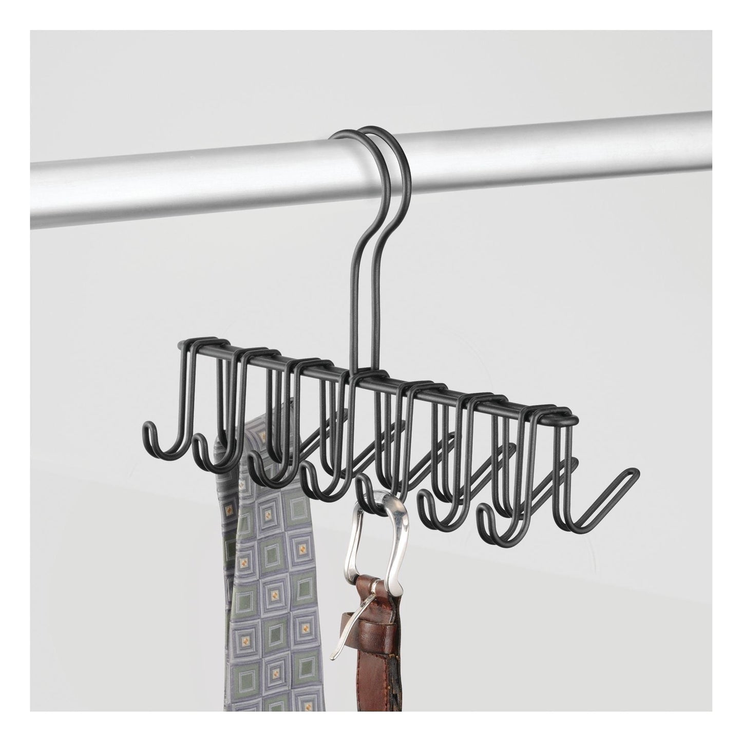 - Hang multiple ties, belts, scarves and other closet accessories with ease on one, single hanger