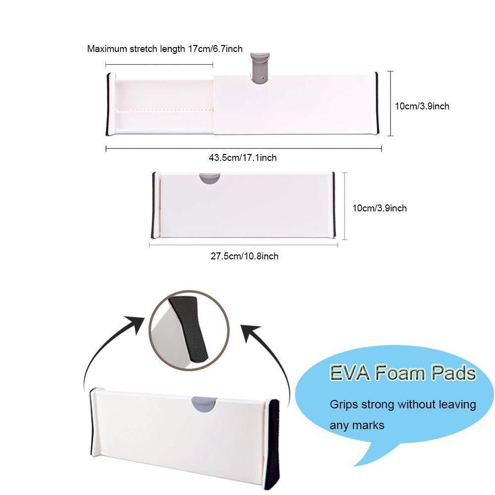 Pack of 2 Extendable Drawer Organizer Dividers Adjustable Closet Cabinet Separators with Anti-Scratch Foam Edges for Kitchen, Bathroom, Bedroom, Office and Dresser Desk, 4'' Tall, 11''-17'' Lo
