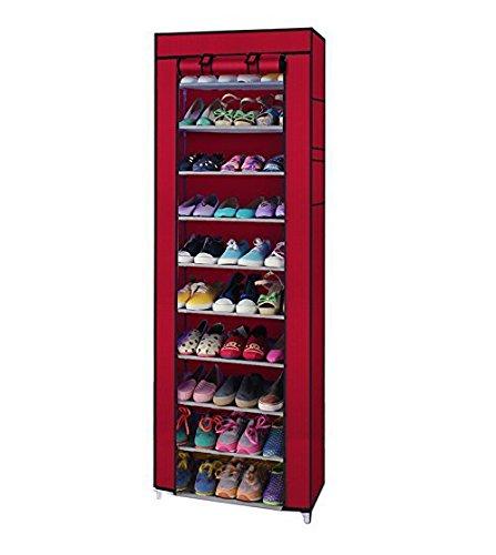 - Selected strong material - made of selected non-woven fabric, steel tube and PP plastic connectors. Abundant storage space - durable 10 tiers shoe rack can store up to 27 pairs of shoes to keep your bedroom, hallway or mudroom well organized