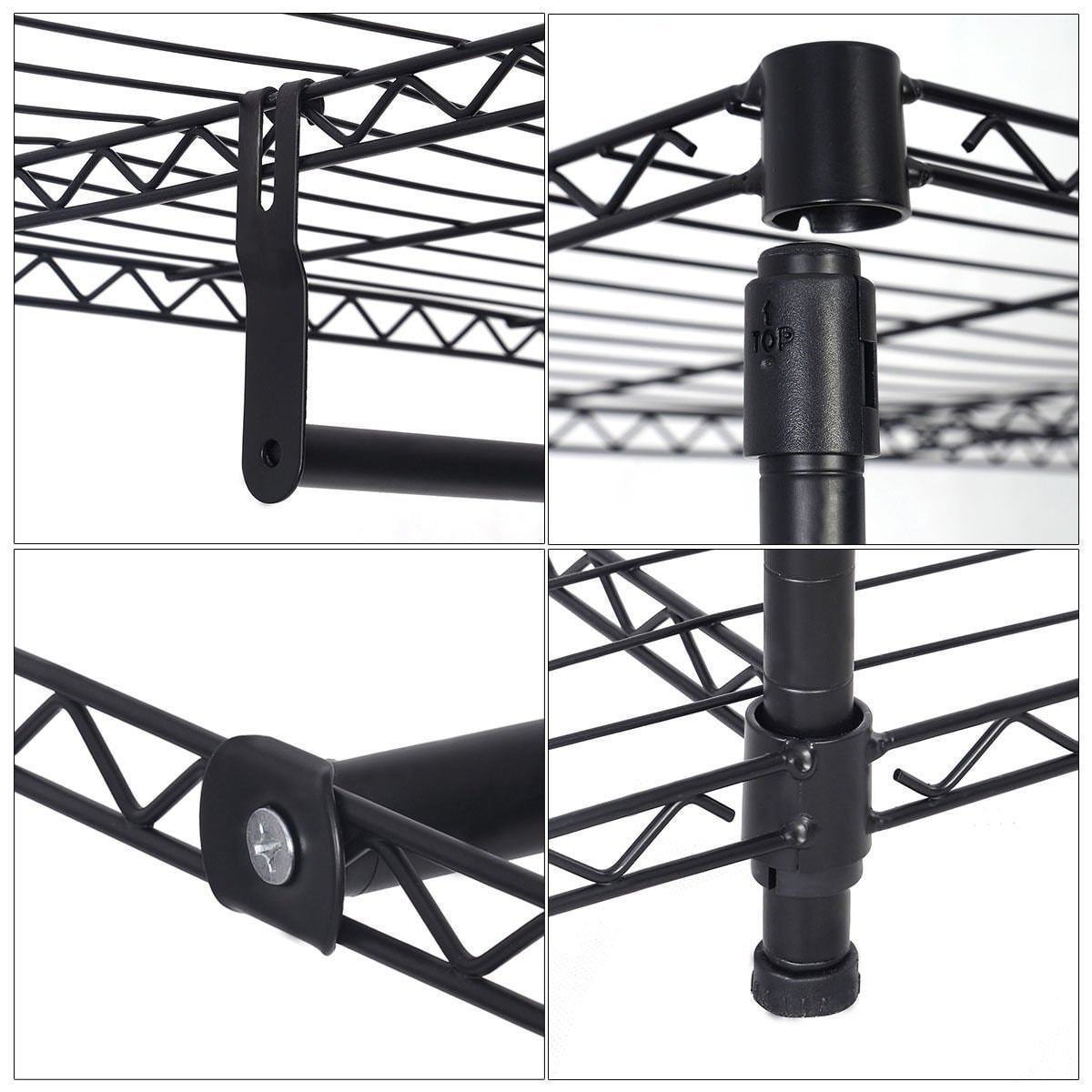 Specifications: Color: Black Material: Low-carbon Steel with Power Coated Three hanging rods plus 2 large shelves and 2 small shelves Dimension: 47.25" X 17.72" X 70.87" Wire Diameter: 4.0/3.0/2.2mm Wire Distance: 40mm Pipe Diameter: 19mm / 3/4" Overall load capacity: 66 lbs/rods;70 lbs/shelf Package Size: 19.30" x 1.97" x 7.48" (L x H x W) Package Weight: 32Lbs (14.5 kg) Net Weight: 25 Lbs (11.34kg)