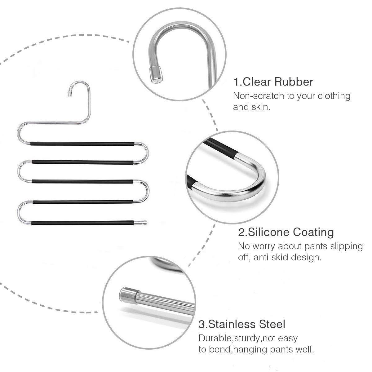 Pants Hangers Non Slip Updated S-Shaped 5 Layers Hangers Closet Space Saver for Jeans Scarf Tie Clothes(6-Pack)