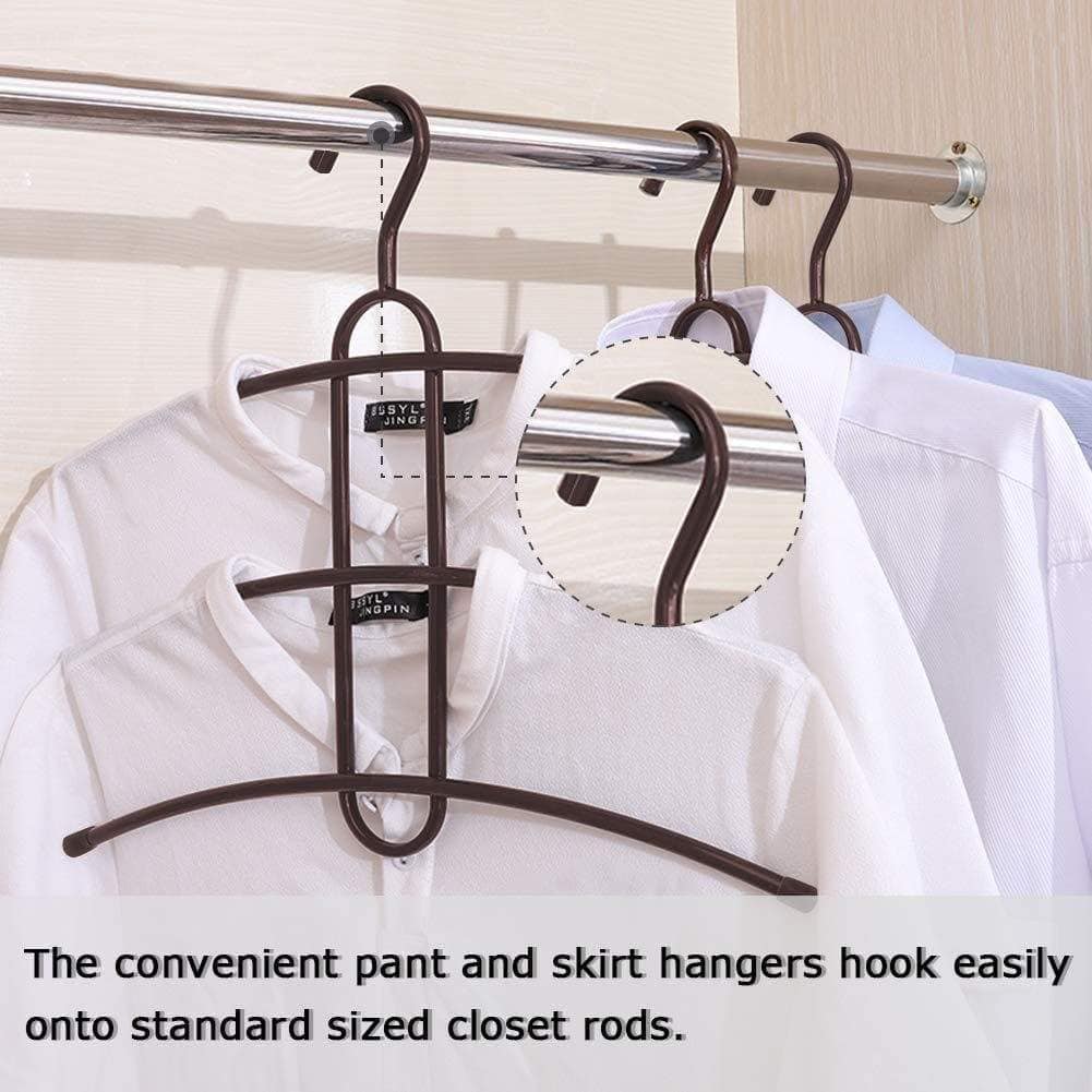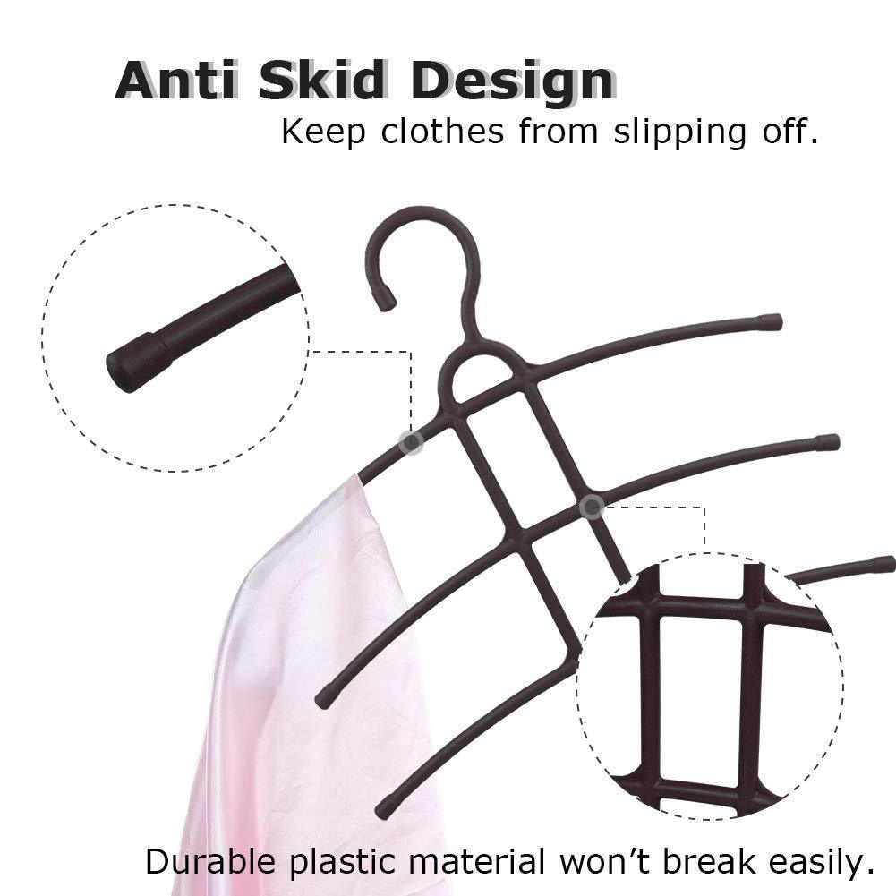 Details: Tired of looking for clothes on the bottom of your closet? These blouse hangers have a unique slight non-slip nodes on their shoulders, that prevents clothes from slipping off. With a complete pack of 5,hold 3 shirts with one hanger,create more room in a small closet.This durable Poly-Propylene multi layers hangers suitable for pants skirts cout trousers jeans scarf towels tie,etc. With the UPRA Hangers, you can hang your clothes without worrying about the mess they could make! These plastic clothing hangers are a must have for every closet.
