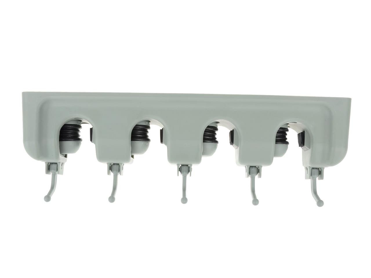 - There are 4 ball slots and 5 hooks so you can organize 11 cleaning utilities in one place. Hooks can be folded up and out of the way. Easy to follow installation instructions are provided