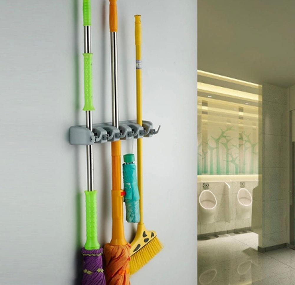 - It has rubber grips on both sides of the ball slot so it holds very well. It is guaranteed non slide even with the thinnest broom or mop sticks and smooth shining handles will not slide down. It can also hold heavy items without sliding down. Upon hanging wet mops it can dry or air out so that you won't have that "musty" odor