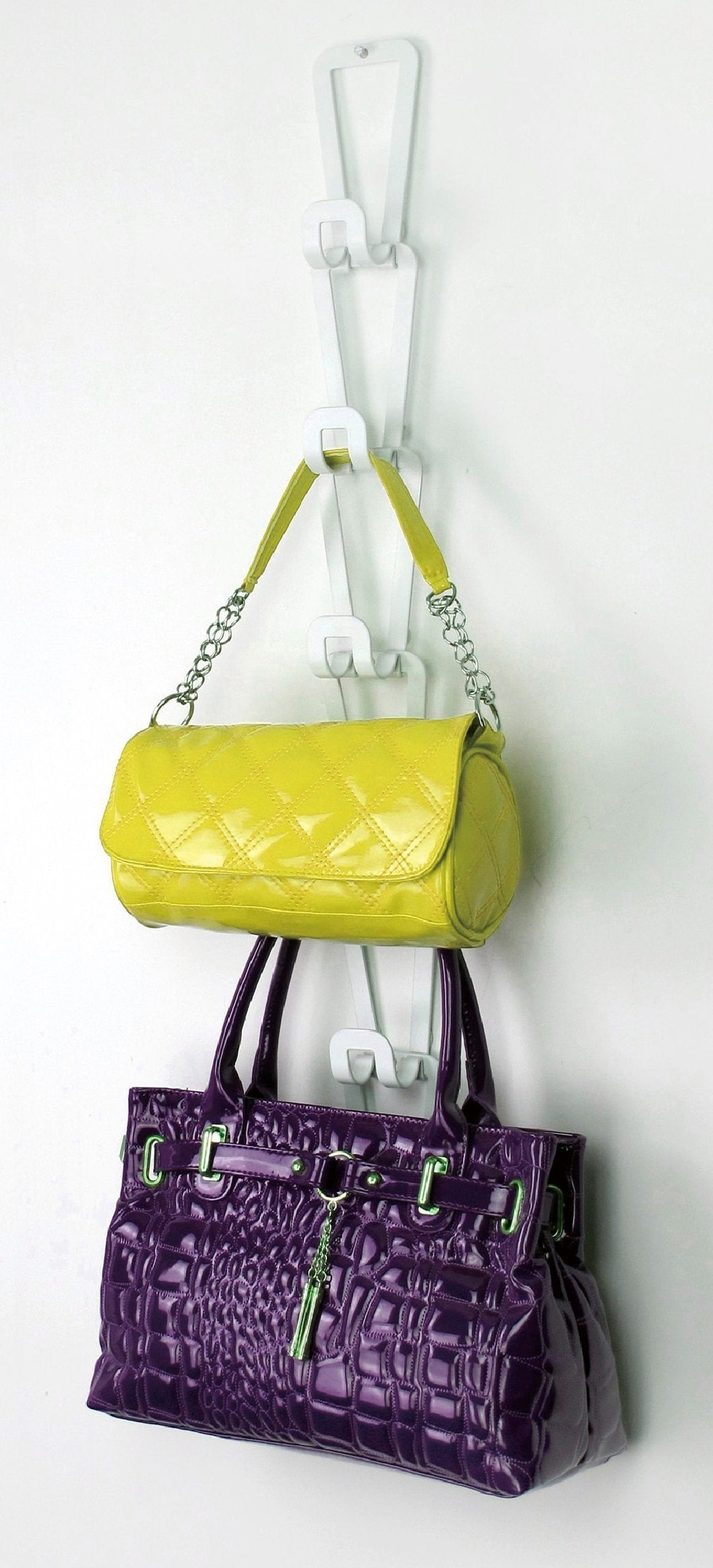 - 3 or 6 HOOK HANDBAG HANGER FOR handbags, satchels, slings, backpacks, scarves, pashminas, ties, belts, and other accessories