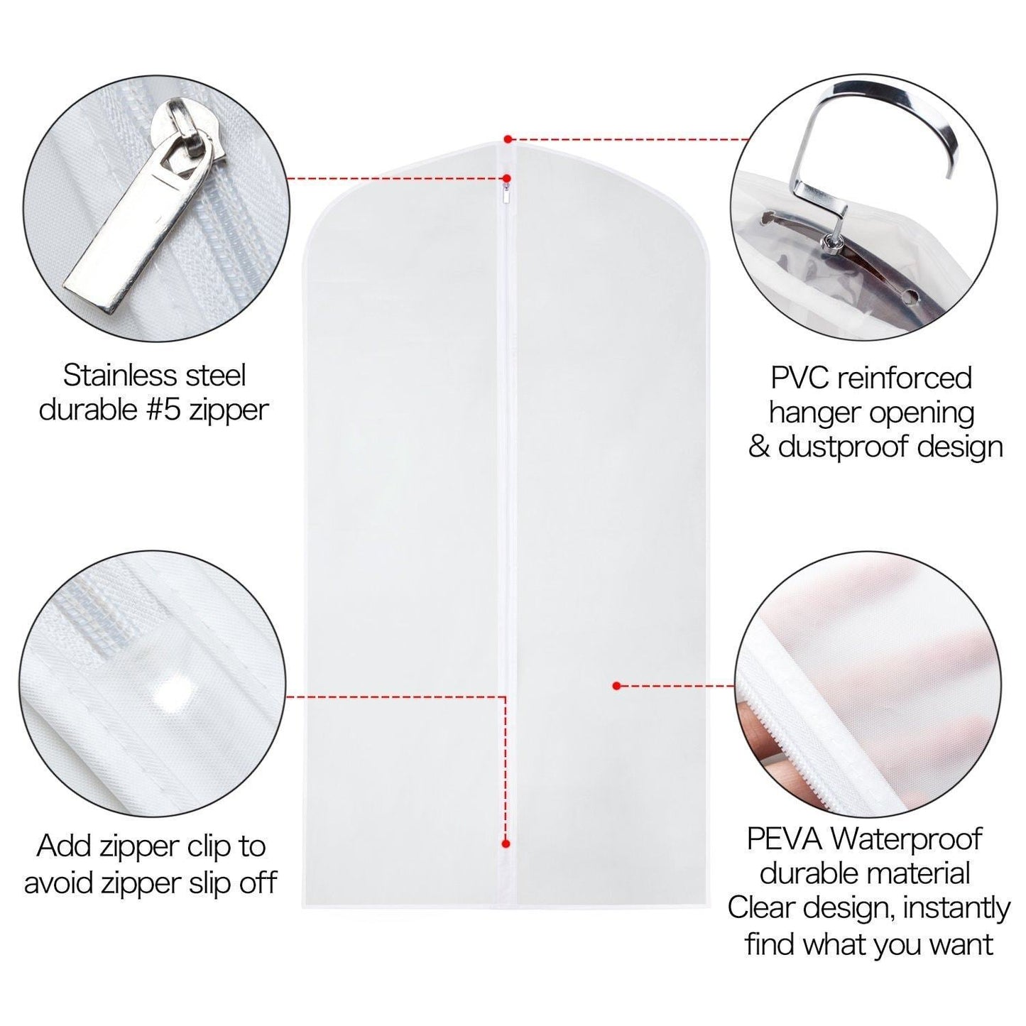 - ? Easy Storage?With this clear garment bags, each of your suits or dresses can have their own cover and room to breathe. The lightweight hanging bag for dresses can be folded in a small size easily, very easy to store when you don't use them, save lots of space.